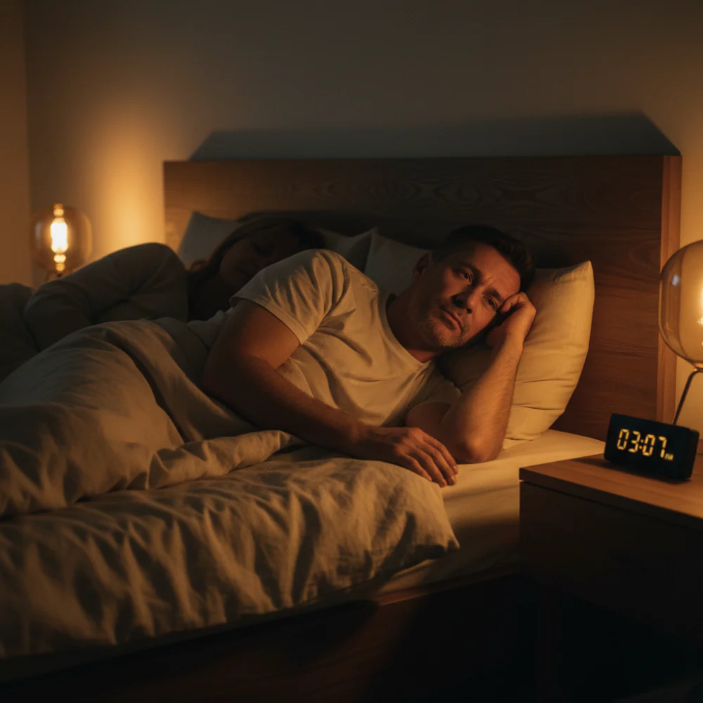 Tussen 02:45 en 03:30 kom je vanzelf in een lichtere slaapfase. Dat hoort zo. Maar wanneer de rem op je hersenen te zwak is, word je wakker van de kleinste prikkel: een gedachte, een geluid, een hormonale golf of gewoon een ongemakkelijk gevoel.